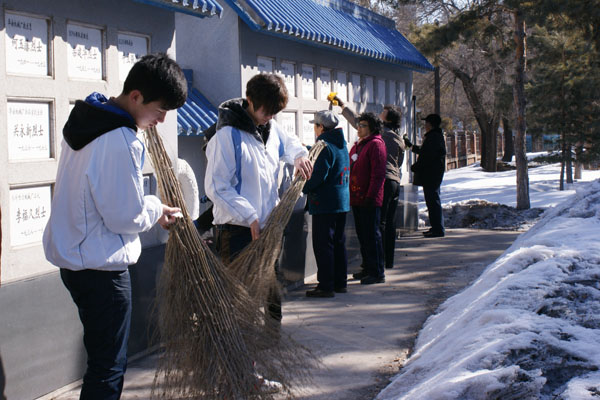 为缅怀革命先烈,弘扬民族精神,继承先烈遗志,清明前夕,团委组织校志愿者总会的近百名志愿者,到西满烈士陵园扫墓。志愿者们怀着对烈士的无限崇敬,向烈士纪念碑敬献花圈,为烈士默哀、扫墓。站在烈士陵墓前,志愿者们聆听了革命先烈的光荣事迹,深深地为革命烈士英勇无私的牺牲精神所感动。学生代表进行了发言和宣誓,表示一定会铭记历史,珍惜现在,肩负起当代大学生的历史使命,为实现“中国梦”而努力奋斗,以告慰先烈。(团委2013年4月3日供稿) 志愿者缅怀革命先烈 志愿者扫墓