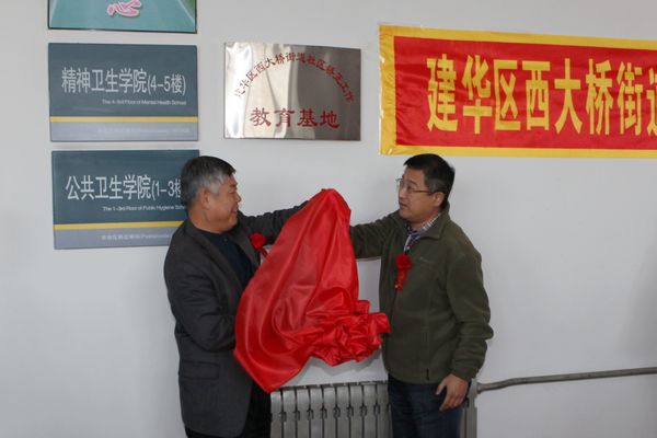 仪式上,学院副院长姜凤楼与市司法局副局长于宏伟共同为“建华区西大桥街道社区矫正工作教育基地”揭牌。精神卫生学院党总支书记、副院长王玉花与建华区西大桥街道办事处主任赵铁宇签订了《社区矫正教育基地协议书》。