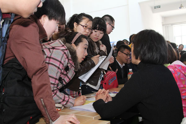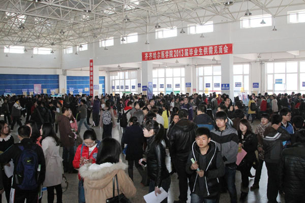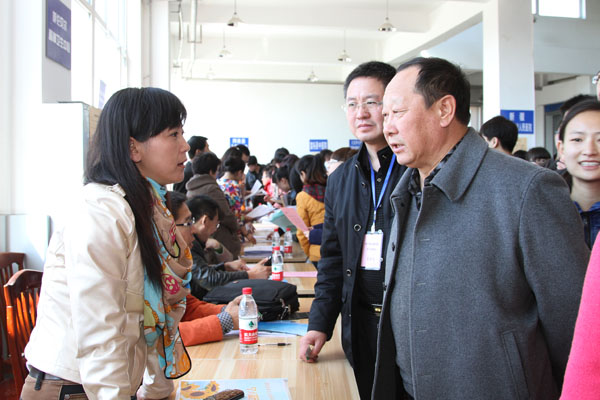 4月19日,2013届毕业生春季招聘会在秋实城三楼大厅隆重举行。来自上海、北京、天津、重庆、广东、浙江、新疆等地的110家医药卫生机构前来参会,参会单位数为历年最高,其中省外单位数量较上次有所增加,占50%以上,许多单位已经多次招聘我院毕业生。此次,用人单位共为毕业生提供了1812个就业岗位,涵盖了我院所有专业。其中临床医学需求量最大,需求数为823个,占总岗位数的45%,精神、影像、病理、护理等专业方向备受青睐,有着广阔的就业前景,管理、心理等专业方向的岗位数与往年相比也明显增多。此次招聘会吸引了应届毕业生和在校生800余人,他们共投出简历2203份。有的单位在招聘会现场即组织了面试,还有的单位在当日下午进行了笔试和面试。据学工部门统计,此次招聘会后有50余名毕业生与用人单位签订了就业协议,有300余名毕业生与用人单位达成了意向性协议。学院党委书记邱福利亲临招聘会现场指导工作,与用人单位交流,为毕业生加油鼓劲。