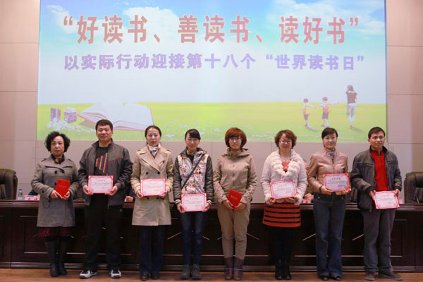 仪式上,学院图书馆馆长文丽宣读了《齐齐哈尔医学院与市文明办联合开展第十八个“世界读书日”系列活动的方案》,市第二十八中学谢晶代表中小学教师作了发言。仪式上还对2012-2013学年度优秀教师读者、学生读者进行了表彰。仪式结束后,与会领导、中小学师生代表还实地参观了学院图书馆。