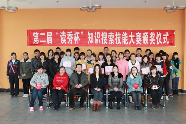 4月22日,为迎接第18个“世界读书日”,提高我院读者的文献信息检索和知识获取能力,图书馆与北京超星数图公司共同举办了“e览群书,快乐阅读”第二届“读秀杯”知识搜索技能大赛。参与PBL教学的师生踊跃参与了本次活动,最终,从122名参赛读者中评出一等奖1名,二等奖2名,三等奖3名,优秀奖20名,纪念奖10名。通过本次知识搜索大赛,读者面对庞大的知识信息海洋,能够更加准确的获取目标信息,将有效提高师生的学习效率。(图书馆2013年4月24日供稿) 参赛读者认真答题 参赛读者与图书馆工作人员合影