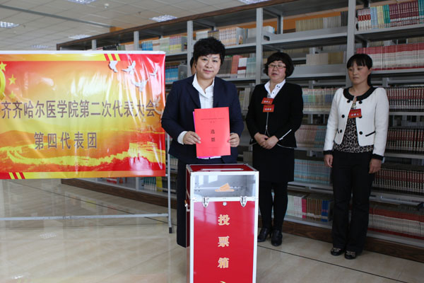 2013年5月18日13:15,学院第二次党代会6个代表团在各自会议地点,召开代表团第四次会议,预选中共齐齐哈尔医学院第二届委员会委员和新一届纪律检查委员会委员。预选工作由各代表团监票人主持。预选“两委”委员采取差额选举的方式,从14名党委委员候选人预备人选中选出11位候选人,从6名纪委委员候选人预备人选中选出5位候选人。 第一代表团代表预选投票 第二代表团代表预选投票 第三代表团代表预选投票 第四代表团代表预选投票 第五代表团代表预选投票 第六代表团代表预选投票