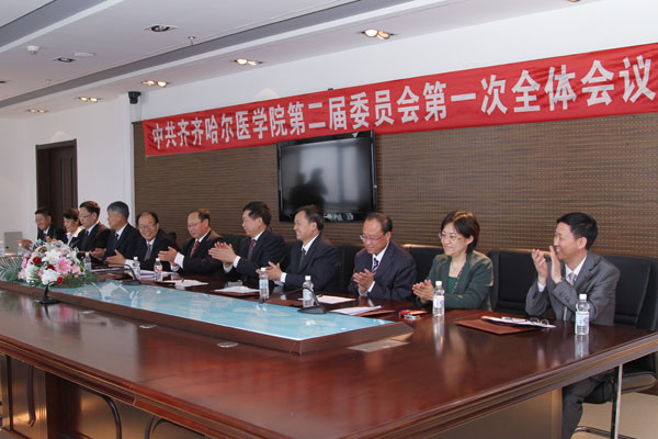 5月18日17时20分,中国共产党齐齐哈尔医学院第二届委员会在图书行政楼1804会议室召开了第一次全体会议。会议由中国共产党齐齐哈尔医学院第二届委员会第一次全体会议召集人邱福利同志主持。新当选的中国共产党齐齐哈尔医学院第二届委员会委员王晓星、丛明宇、毕红霞、刘吉成、何宪坤、张晓杰、姜凤楼、姜国庆、崔光成、谭忠汉(按姓氏笔画为序排列)参加了会议。