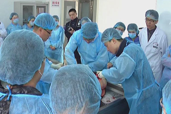 为加强学生实际操作能力,提高人才培养质量,近日,我院临床医学专业部分大三学生和临床病理诊断中心实习学生30余人参加了市公安局的尸检教学活动。尸检教学过程中,市公安局技术大队赵明辉队长对尸检过程及注意事项进行了详细描述和讲解,并认真解答了学生们提出的问题。这种听取讲解、现场观看、动手操作相结合的方式,激发了学生浓厚的学习兴趣和求知欲望,对他们更好地掌握理论知识,学以致用起到了良好效果。(病理学系2013年5月17日供稿) 尸检教学活动现场