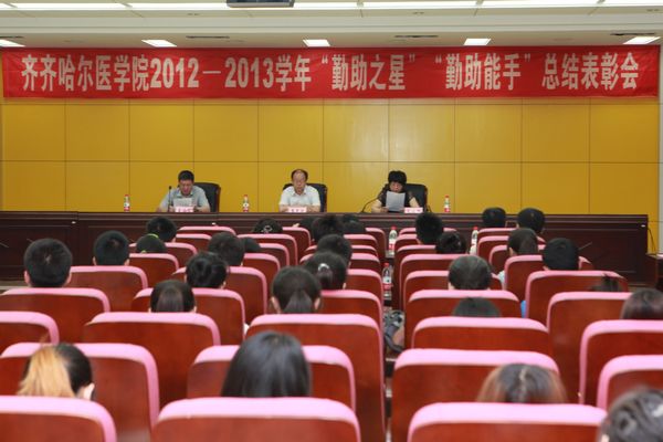 会上,学工部副部长李迎新对2012—2013学年勤工助学工作进行了总结汇报,学工部部长姜国庆宣读了《关于表彰2012—2013学年“勤助之星”、“勤助能手”的决定》。伴随着欢快的颁奖曲,出席表彰大会的领导为获奖学生颁发了荣誉证书。随后,受到表彰的5名“勤助之星”依次上台作经验交流。身残志坚、服务一线的图书馆助理刘彦双同学,回顾了自己一年多来在勤工助学工作中的点点滴滴,他说:“勤工助学对我的生活甚至人生产生了巨大的影响,我将终身受用”,简单的话语中流露出了满满的感激和喜悦。代慧慧同学为了身患顽疾的母亲,自强不息、坚持奋斗;邹丽媛同学秉持正直的品格在平凡的岗位上默默工作;韩军学同学在繁重的课业之余,坚持每个礼拜做两份兼职补贴生活;张烁同学向大家讲述了他如何逐步建立起责任心,做到每一件事都问心无愧的心路历程。“勤助之星”用他们的生动事迹向广大师生诠释了什么是坚强不屈,什么是自立自强,他们带着各自的热情与梦想上路,书写着属于自己的青春,他们朴实的话语、真挚的情感和对未来坚定的信念感染着现场每一位师生。