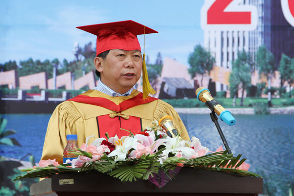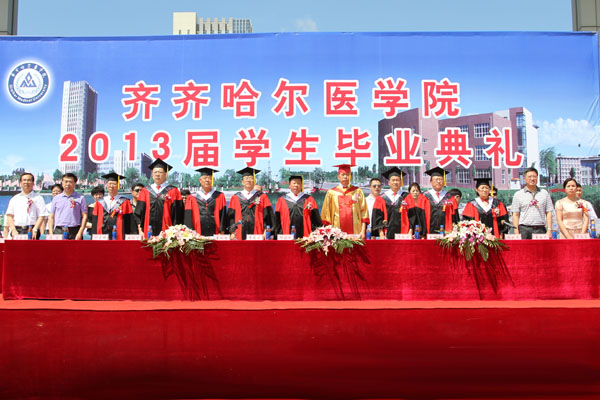 如果说开学典礼是莘莘学子迈入大学校门的第一课的话,那么毕业典礼就是他们走入社会前母校为他们准备的最后一课。作为这两次课的主讲人,院长刘吉成教授从长者、师者、医者的角度,表达了对毕业生的牵挂、祝福、期待……他引用丘吉尔的话告诫同学们“永远,永远,永远不要放弃!”希望同学们永远不要放弃理想,牢固树立“服务社会、奉献人民、引领未来”的远大理想和“格物、致知、正心、诚意、修身、齐家、治国、平天下”的坚定信念,在实现中华民族伟大复兴的中国梦的生动实践中实现自己的人生价值。以吃苦耐劳的品质、坚韧不拔的意志和爱岗敬业的精神,扎实工作,迎难而上,成为“最好的自己”。永远不要放弃责任,选择了从事医学,就要勇于承担起一份神圣的责任,因为世界上没有什么比健康和生命更重要。他希望同学们要记住宣誓过的医学生誓言,要践行齐医“大医精诚”的理念,为人民的健康保驾护航。永远不要放弃学习,放弃学习就意味着停滞不前,就意味着落伍,医学是一门需要永远探索的科学,作为医药工作者必须终身学习。要把学习变成一种习惯,享受学习,享受工作,通过学习成为一个幸福的人、成功的人。刘吉成院长还希望毕业生们做一个身心健康的好医生,要有一个健康的体魄、有一颗进取之心、感恩之心。精彩而深情的毕业寄语不时赢得毕业生们热烈的掌声。
