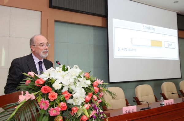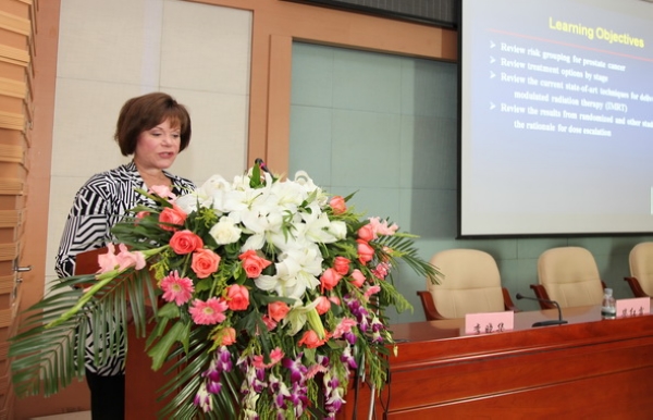 交流期间,4位专家与附属三院专家一同出诊,为前来就诊的肿瘤患者讲解病情、给出诊疗意见,积极与附属三院专家交流经验与心得。9月11日,专家们在附属三院门诊综合楼四楼报告厅举行了肿瘤诊断与治疗新进展国际论坛暨继续医学教育学术讲座,学院纪委书记、我院党委书记、院长毕红霞在学术会上发表了讲话。讲座中,美国FoxChase肿瘤中心4位专家及附属三院孙玺媛主任就国内外肿瘤防治新动态、新进展、新成果及临床经验等作了专题学术报告,来自全市各医疗机构的专家、留学生300余人参加了讲座。