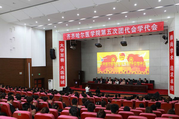 共青团齐齐哈尔医学院第五次代表大会和齐齐哈尔医学院第五次学生代表大会全面回顾了第四次团学代会以来,特别是近五年我院团学工作走过的光辉历程;在深入分析新时期、新形势发展要求的基础上,提出了今后五年我院团学工作的指导思想和基本任务。这是一次朝气蓬勃、开拓创新、富有时代精神的大会;是一次继往开来、与时俱进、团结胜利、求真务实的大会;更是全院广大团员青年坚定不移地贯彻党的十八大、团的十七大、省第十三次团代会和学院第二次党代会精神,实现把我院建设成为高水平的特色应用型本科院校乃至医科大学奋斗目标的动员大会。
