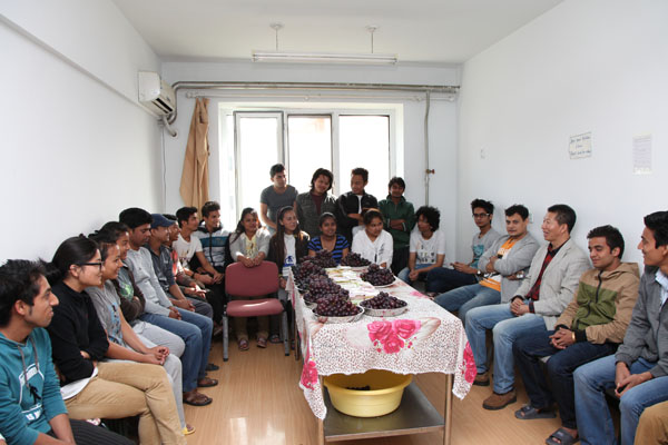 9月18日,外事处处长丛喜权带着月饼、水果等慰问品,看望了2013级留学生,向他们送去了学院的关怀与祝福。在与留学生的交流中,丛喜权处长详细询问了他们的生活和学习情况,并希望他们珍惜难得的留学机会,刻苦学习,努力成才。