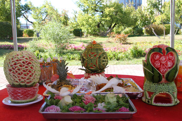 本届展出的美食比往届又增添了许多花样,主副食展品达百余种。雕刻作品仍然最受师生员工欢迎,本届美食节上展示的萝卜雕的龙凤呈祥、连年有余等栩栩如生,西瓜雕的米老鼠、花篮更是惟妙惟肖,师生们用手机拍下了这些巧夺天工的艺术品;展出食品中的酱肘子、叫花鸡、香酥鸭、松鼠鱼和各种特色小吃深受师生欢迎;制作的面点琳琅满目,让人眼花缭乱,引得师生赞不绝口。
