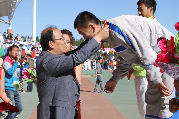 党委副书记崔光成为获奖运动员颁奖