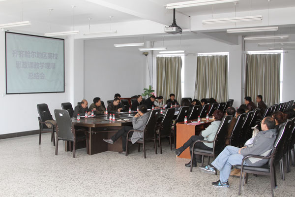 10月15日,齐市地区高校思想政治理论课教学观摩活动最后一站暨总结大会在我院举行。省教育厅思想政治教育处副处长杜海军、省高校思想政治理论课教师培训和研修基地主任苏泽宇、学院党委宣传部长王彬、社科部副主任杨俊全、齐市地区各高校思想政治理论课负责人及30余名思想政治理论课教师参加了教学观摩及总结大会。