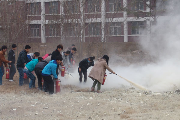 本次演练包括紧急疏散演练和初期火灾扑救训练两部分内容。演练开始前,保卫处工作人员为师生们作了详细的火灾逃生知识及灭火器使用方法培训。随后,在模拟火灾环境下,工作人员迅速组织学生撤离,开展了有条不紊的疏散逃生演练。逃生科目完毕后,师生们进行了大规模的灭火器实际操作。为确保模拟演练达到实效,保卫处调拨了300罐干粉灭火器供师生学习操作。