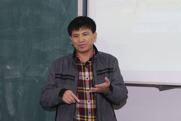 基础医学院解剖教研室刘富老师为本次培训的主讲教师,他结合自身开展PBL教学的丰富经验,从PBL的发展情况、基本要素、教学过程、注意事项等方面,为与会师生作了详细讲解。刘富老师指出,PBL教学法是以问题为导向的教学方法,运用在临床医学中即以病例为先导,以问题为基础,以学生为主体,以教师为导向的教学方式,以培养学生的能力为教学目标,该教学法的精髓在于发挥问题对学习过程的指导作用,调动学生学习的积极性和主动性。培训结束后,刘富老师与2011级实验班的7名同学进行了PBL示范教学。学生围绕案例涉及到的知识点积极提出问题,主持人将讨论的关键问题记录在黑板上并控制着讨论范围,课堂上学生踊跃发言,现场气氛十分活跃。通过培训和示范教学,与会师生对PBL的教学方式、老师和学生的角色定位等有了更直观、深入的了解。