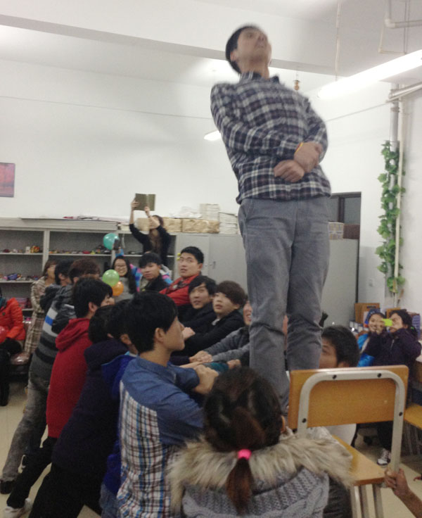 “桃花朵朵开”游戏拉开了拓展训练的序幕,培训师报出桃花组合数字,学生按照数字抱成团,最终以“二男七女”的形式开出了5朵“桃花”,形成了5个小分队。随后,培训师指导学生开展了“盲人和哑巴”、“深海求生”、“信任背摔”等游戏,考验了临时组建小分队成员间的默契度、信任度及合作意识。拓展训练增强了学生的责任意识,使他们认识到在一个团队中相互配合、有效沟通、彼此信任的重要性。学生们纷纷表示,要明确今后的学习目标,互相帮助,共同努力,乐观面对生活中的困难与挑战,书写属于他们的青春风采。活动在全体学生合唱的《奔跑》歌声中圆满结束。