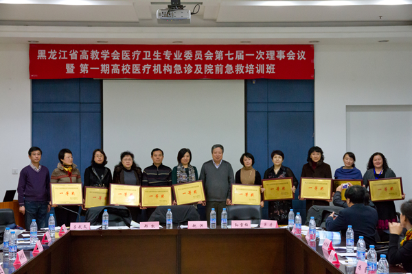 近日,在黑龙江省高教学会医疗卫生专业委员会第七届一次理事会议暨第一期高校医疗机构急诊及院前急救培训班上,我院喜获“黑龙江省高等院校医疗机构院前急救竞赛一等奖”。我院卫生所所长綦艳秋代表学院上台领奖。