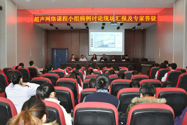 教学观摩活动中,刘慧临教授对超声网络课程的进展、网络论坛相关情况作了详细介绍,并与梁笑副教授就网络论坛上的病例进行了总结与分析,心内科一病区主任李春峰、肾内内分泌科主任张健、内科教研室秘书王文斌、外科教研室秘书郑春雷等为学生进行了现场答疑。鲍红光副院长指出,超声网络课程严格按照大纲要求,采用现代教育技术手段实施教学,方便快捷,受众面广,较好实现了网络平台与课堂教学的有机结合,希望广大师生认真开展超声网络课程学习,开启医院临床教学改革的新篇章。