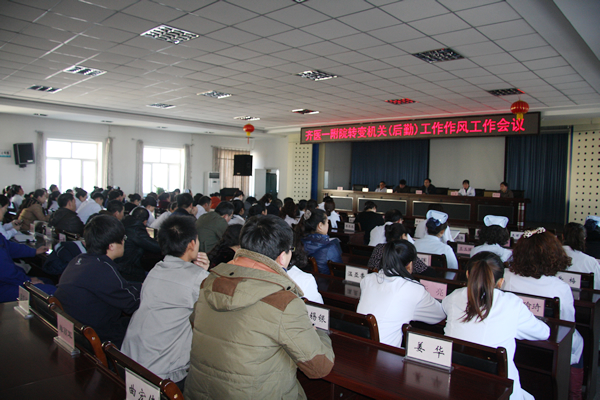 会上,医院纪委书记刘晖宣读了附属一院《转变机关工作作风专项治理工作方案》。护理部主任郑春丽代表机关后勤人员作表态发言。