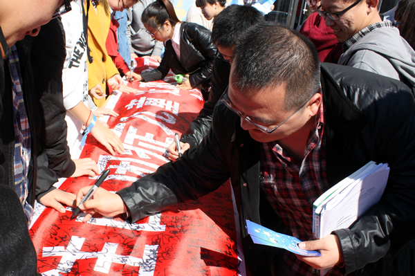 当日,在公益展览活动开幕式上,精神卫生学院学生为到场嘉宾及领导佩戴了象征着“爱与付出”的蓝丝带,并为参观人员细致讲解了自闭症儿童的美术作品。活动前期,学生们积极深入相关企事业单位进行宣传,并投入布置展馆及开幕式彩排当中,为齐市第二届自闭症儿童绘画作品公益展览活动顺利开展作出了贡献。3月31日,该院还组织社会工作专业师生在校内举办了“爱在蓝天下,关爱自闭症儿童”签名宣传活动,近千名师生参与了当天的活动,表达对自闭症儿童的理解和关爱。