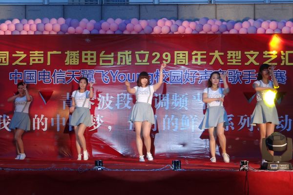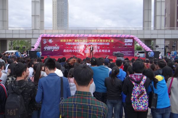 5月14日晚,由学院团委主办,“校园之声”广播电台承办的“校园之声”广播电台成立29周年“青春波段•调频当夏”暨“我们的中国梦•五月的鲜花” 大型文艺汇演在大医广场举行。1000多名在校大学生到场观看了演出。