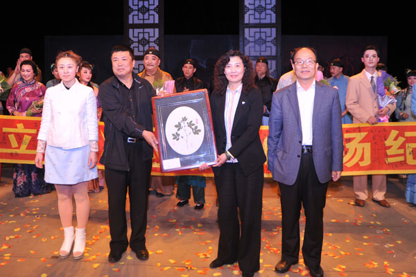 话剧《立秋》是由山西省话剧团出演的,此次齐医学院专场正值《立秋》剧组第700场演出。演出结束后,我院党委副书记崔光成代表学院向话剧《立秋》剧组赠送了精心准备的纪念品,并与全体演职人员合影留念。