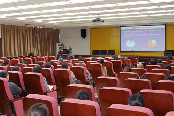 报告会上,张晓杰教授详细介绍了她参加由教育部、李兆基基金、香港培华教育基金会组织的“千名中西部大学校长海外研修计划”,赴英国进行高等教育培训和文化考察的经历及感受,并结合英国高等教育概况与现场听众探讨了英国大学的发展战略与发展规划、大学与政府的关系及内部治理、高等教育质量保证措施、教师队伍建设与管理、产学研结合与支持地方经济发展等问题。她强调,我们应该拓展国际视野,借鉴国外先进的办学理念和经验,坚持以学生为本,重视学生参与、学生评教以及学生实践能力和创业能力的培养,建设一支素质过硬的师资队伍,重视课堂教学模式创新及课堂教学细节,不断提高人才培养质量。