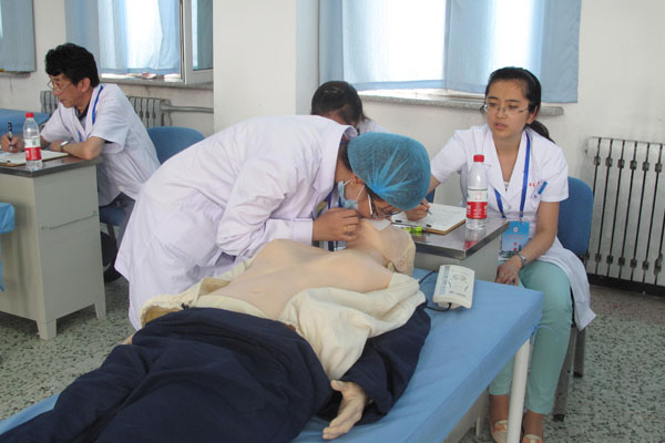 自6月8日开始,2014届临床医学专业毕业生毕业技能综合考试在学院临床技能实验教学中心全面展开。学院教务处、教学实验实训设备中心和团委共同参与了此次考试的组织工作,张晓杰副院长亲临考试现场指导工作。考试为期6天,采取客观结构化临床技能考试(OSCE)方式,全方位考核毕业生临床技能。