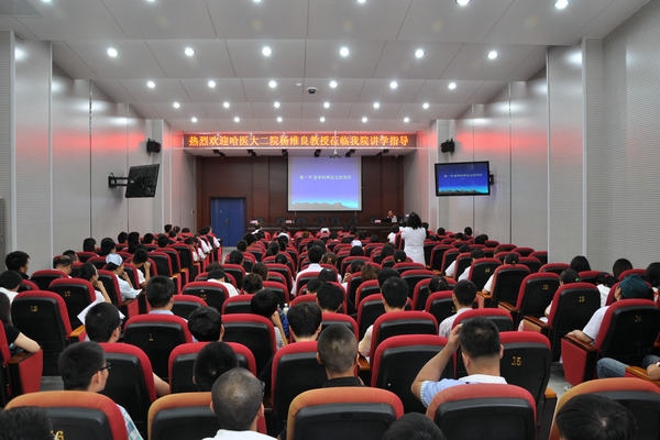 6月7日,哈医大二院普外科专家、博士生导师杨维良教授应邀到附属二院讲学。医院院长张淑英教授等领导班子成员、普外科主任张浩民教授、副主任王峰副教授等医护人员及学生200余人到场听取讲座,医院副院长鲍红光主持讲座并致欢迎辞。