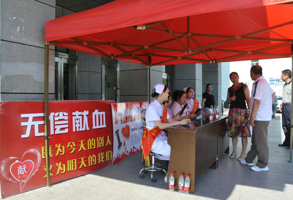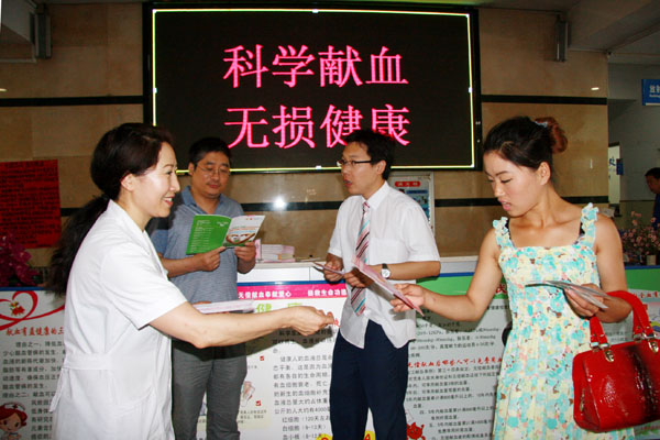 附属二院以世界献血者日为契机,在医院领导的指导下,医务科、血液科、护理部共同在门诊楼前布置了宣传会场,设置突出献血日主题及无偿献血的宣传板,发放刊有积极献血、用血安全的宣传资料,向广大市民广泛宣传“科学献血、无损健康”的科学理念,并解答市民对无偿献血的疑问。