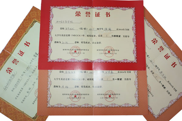 全国大学生英语竞赛是经教育部等有关部门批准举办的全国唯一的大学英语综合能力竞赛活动,设有特等奖、一等奖、二等奖、三等奖等4个全国奖励等级,其中,特等奖和一等奖通过决赛产生,二等奖和三等奖通过初赛产生。自2009年组织学生参加全国大学生英语竞赛以来,学院共有5人获特等奖,12人获一等奖。