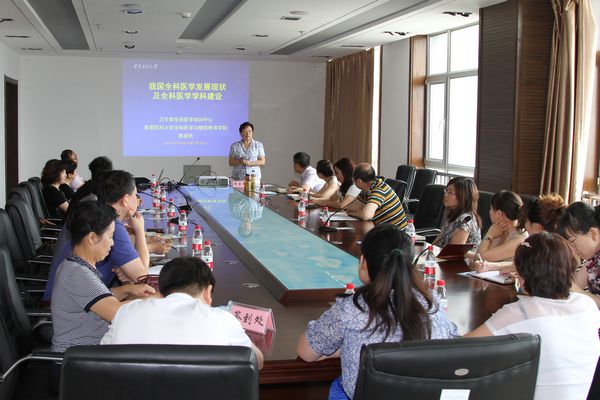 7月5日上午,卫生部全科医学培训中心副主任、首都医科大学全科医学与继续教育学院党委书记、我国全科医学教育管理研究方向带头人、博士研究生导师郭爱民教授为我院教师作专题学术讲座。成人及继续教育学院全体人员,教学研究与评估部部分教师,公共卫生学院相关教师,附属第一、二、三医院教学副院长、教务科长等40余人到场听取讲座。