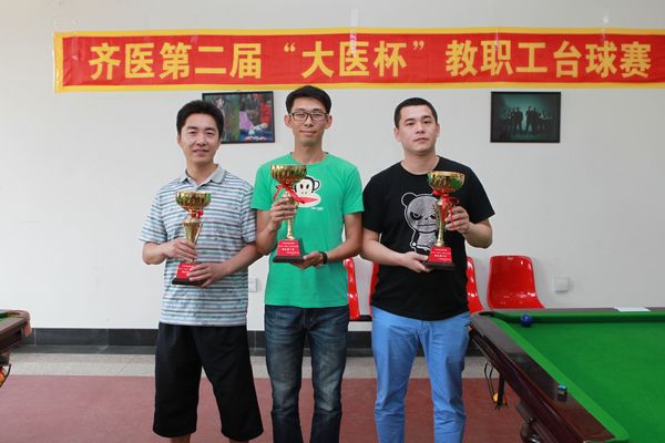 7月10-11日,由学院工会主办、台球协会协办的第二届“大医杯”教职工台球赛在我院台球活动室举行。比赛分为团体赛和个人赛2个项目,共有来自机关、各院系、附属医院的50余名选手参加了比赛。经过紧张激烈的角逐,医技精卫病理联队、附属一院、基础医学院代表队分获团体赛前三名,学院本部郭岩、陈云辉、附属三院孙伟获个人赛前三名。比赛丰富了教职工的校园文化生活,增进了选手间的友谊与交流,比赛过程始终洋溢着和谐、友好、文明、欢乐的气氛。