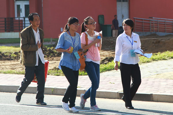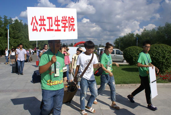 早上天刚刚亮,第一批志愿者已经集合在大医广场前,奔赴齐齐哈尔火车站,开始紧张忙碌的工作。同时,前往新生报到处、学生宿舍等场所的志愿者也做好各种准备,分赴各自的工作岗位。他们身穿工作服,微笑着迎接新生的到来:“同学您好,请问您是哪个专业的?有什么我可以帮忙的地方吗?”这句话在火车站、校园内随处都能听见。他们有的协助教师工作,有的为学生家长耐心解答,有的帮助新生指引路线,有的指挥道路交通,校园里随处都能看到他们忙碌的身影。