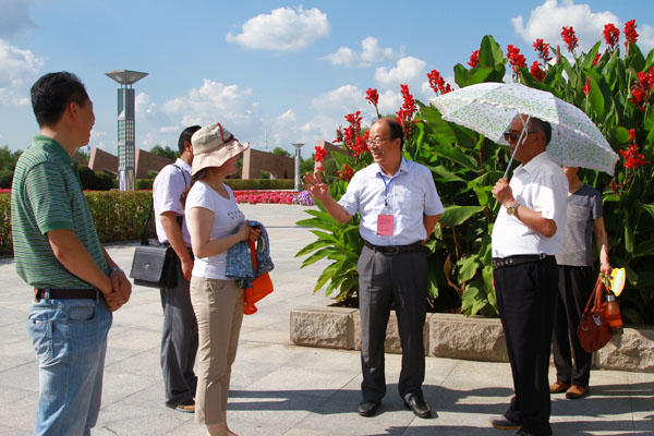 崔光成副书记与参观校园的新生家长交流