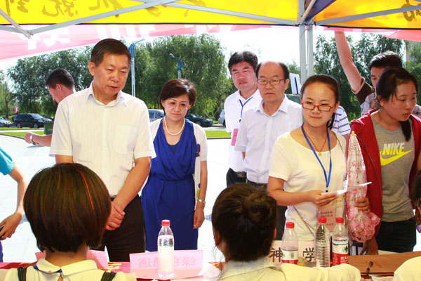 23日上午,学院领导邱福利、刘吉成、崔光成、张晓杰一行到迎新现场指导工作。在大医广场新生报到点,学院领导亲切慰问了现场老师和学生志愿者,仔细询问了迎新工作的进展情况,并详细了解了各院系绿色通道的报到流程和申请情况,刘吉成院长说:我们要关心每一个家庭困难的学生,特别是来自灾区的同学,决不能让他们因为经济困难而放弃学业。随后,学院领导一行到收费处、体检处、学生公寓等场所进行了走访。在学生公寓,学院领导主动与新生们交谈,询问他们家是哪的,为什么选择齐医,有没有什么问题需要解决。来自甘肃的一个小伙子说,他从幼儿园开始就梦想学医,家长和他一起查阅了很多资料,最终选择了齐齐哈尔医学院。刘吉成院长一行肯定了小伙子的志向,并鼓励他好好学习,做一名优秀的健康卫士。走访持续了近2个小时,学院领导一行对各单位的接待工作给予了充分肯定,并高度赞扬了大家认真负责的工作态度。