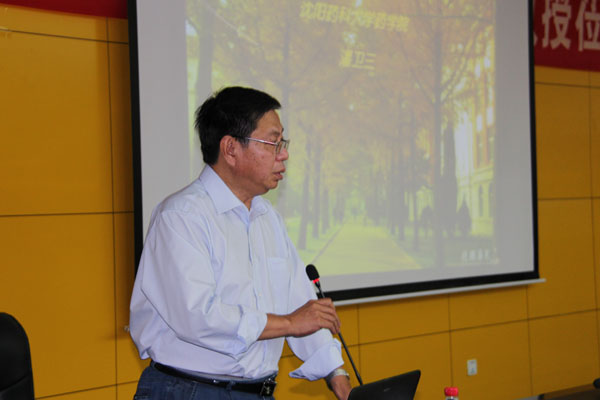 讲座中,潘卫三教授介绍了沈阳药科大学及该校药剂学科的发展历程,讲述了口服缓控释制剂的原理、方法与应用,提出了深入研究缓控释制剂的必要性,并重点讲解了渗透泵控释制剂的释药原理、制备工艺及产业化情况。潘教授生动幽默的语言、深入浅出的讲解深深吸引了参加讲座的师生。讲座后,药学院为潘卫三教授颁发了客座教授聘书,并组织相关教师与潘卫三教授进行了座谈,双方就新药研发、靶向治疗、天然药物国家自然科学基金选择研究与申报方向等问题进行了广泛而深入的交流。