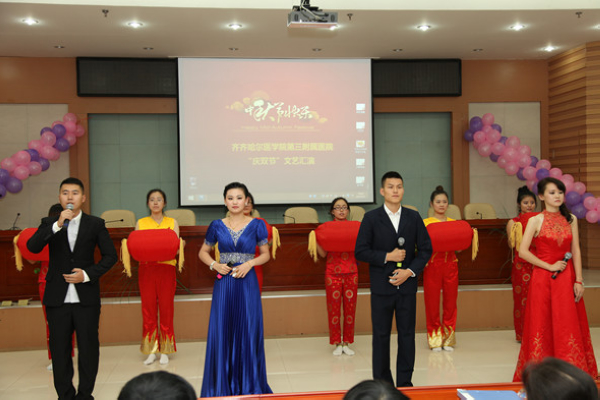 典礼结束后, “梦飞三附情满中秋”庆祝中秋节、教师节联欢会在欢快的开场舞中拉开了序幕。老师和同学们表演了歌曲、舞蹈、小品、诗朗诵、三句半等节目,演出精彩不断,现场洋溢着浓浓的师生深情。在“心有灵犀”游戏环节,医院领导、老师和学生之间的互动,赢得了观众们的阵阵掌声和笑声,也将联欢会推向了高潮。整场演出持续近2个小时,在歌曲《相亲相爱一家人》中圆满落下了帷幕。