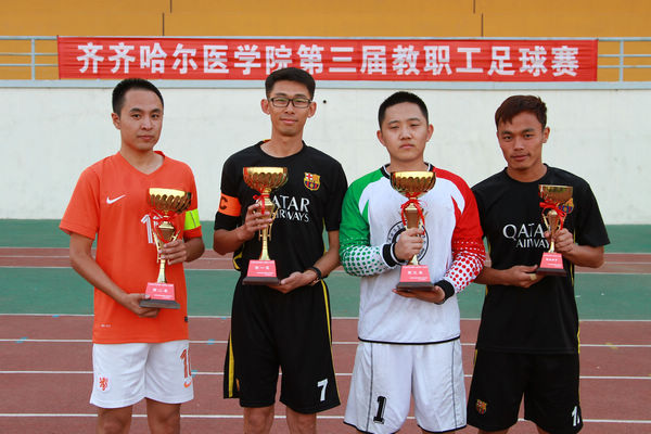 本次比赛得到了全院广大教职工足球爱好者的积极参与,共有4个基层工会的代表队参加比赛。比赛采取循环赛制,4支队伍进行了6场激烈角逐。最终,学院本部代表队摘得桂冠,实现了三连冠,附属二院和附属一院代表队分别获得了第二名、第三名,学院本部代表队运动员钱库获得“最佳射手”称号。