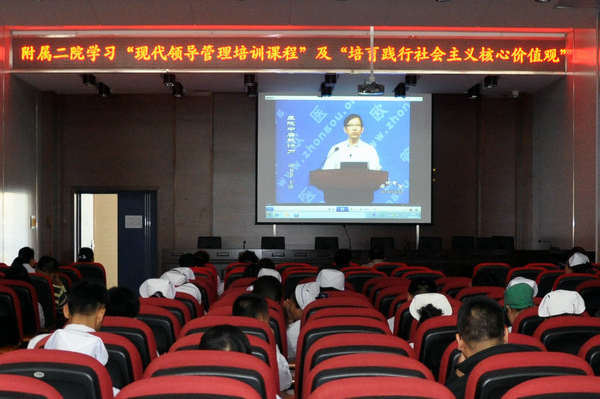 为提高中层干部管理水平及执行力,附属二院党委定于9-12月每周五下午对医院全体处科级干部进行培训,培训内容包括现代领导管理课程及社会主义核心价值观培育。9月19日,医院领导及全体中层干部在全科医师转岗培训基地楼多功能厅集中学习了现代领导管理课程《医院中层执行力》,观看了专题记录片《国魂》。