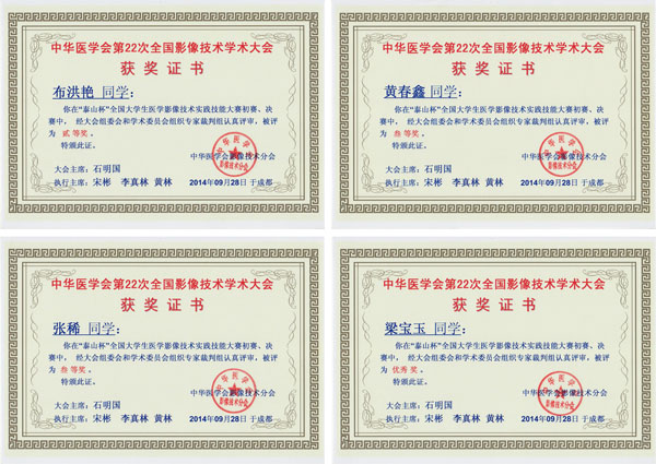 比赛分为预赛和决赛两个环节,主要考察学生对医学影像检查技术学、医学影像诊断学、医学影像设备学等基本知识和专业技能的掌握熟练度及综合应用能力。我院选手凭借良好的心理素质、扎实的影像技术理论和技能基础,充分发扬团队协作精神,在决赛中克服了强手如林、预赛成绩暂时落后的心理压力,最终荣获团体一等奖,展现了齐医学子的风采。同时,布洪艳同学获个人二等奖,黄春鑫、张稀同学获个人三等奖,梁宝玉同学获个人优秀奖。团体一等奖将于9月26—29日在成都召开的中华医学会影像技术分会第22次全国学术大会暨国际影像技术论坛上进行颁发。
