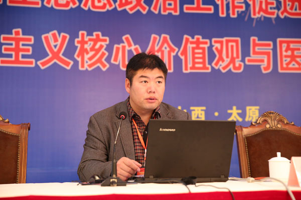 本次大会由中国卫生思想政治工作促进会医学教育分会主办、山西医科大学承办,来自全国各地61所医学院校的200余名代表参加了会议。大会上,学院宣传部部长张宝林作了题为《大医文化培养医学生人文素质的实践与探索》的交流发言,对学院在大医文化育人过程中,将社会主义核心价值观与医学职业精神紧密相连,“以科学的培养模式教育人,以优美的人文环境熏陶人,以丰富的课外文化活动感染人,以优质的社会服务激励人”进行了全面阐述。