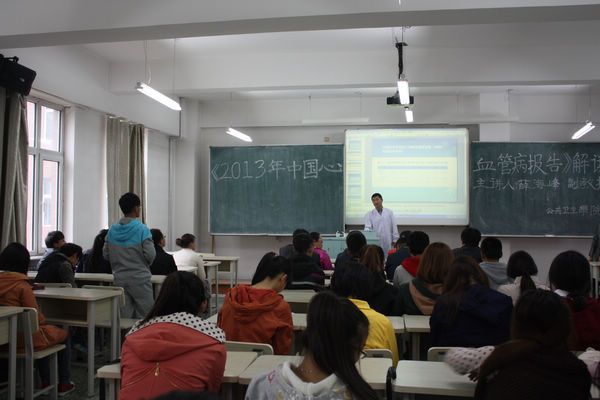 9月28日,公共卫生学院实验教学中心主任、北京协和医学院流行病与卫生统计学博士薛海峰副教授以《2013年中国心血管病报告》为题,向该院师生传达了2014年中国心脏大会的会议精神,介绍了心血管病的危险因素、流行趋势、患病和死亡等相关情况。