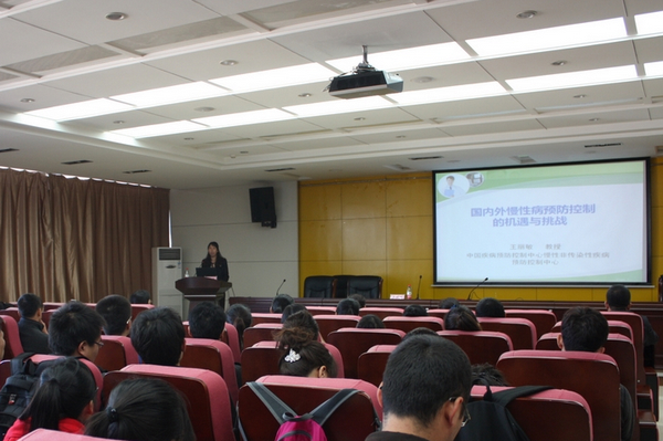 10月9日,中国疾控中心慢病中心监测室主任王丽敏教授应邀来院,为公共卫生学院师生作了《国内外慢性病防控的机遇与挑战》专题讲座。王丽敏教授阐述了全球慢性病流行状况与危害、全球慢性病防控策略,并结合我国慢性流行病的实际情况,提出了中国慢性流行病的防控策略及措施。