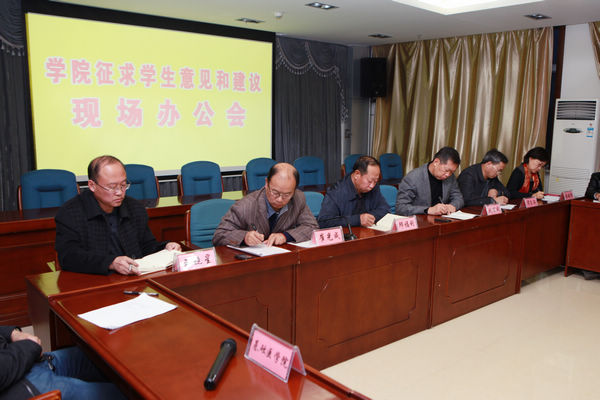 为不断巩固党的群众路线教育实践活动成果,体现“以学生为中心”的育人理念,促进文明和谐校园建设,10月31日,学院党委召开了学生工作现场办公会,倾听学生的意见和建议。学院领导邱福利、刘吉成、崔光成、谭忠汉、王晓星、张晓杰出席会议,党办、院办、学工部、宣传部、团委、教学研究与评估部、保卫处、总务处、后勤服务公司、现代教育技术中心等12个相关部门负责人及不同专业、地域、民族和政治面貌的26名学生干部和普通同学代表参加了会议,会议由学院党委副书记崔光成主持。