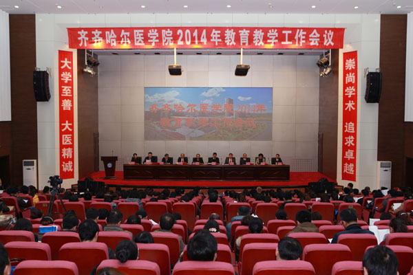 11月12日,学院2014年教育教学工作会议在图书行政楼二楼多功能厅召开。学院领导班子全体成员,院本部副科级以上干部、副高职以上人员、学科带头人、后备带头人、教学相关管理人员,附属第一、二、三、四医院领导班子全体成员,附属第五、六、七、八、九、十医院及黑龙江省农垦总局总医院院长、教学副院长、教学基地负责人,以及师生代表共300余人出席大会。学院院长刘吉成讲话,学院党委副书记崔光成、副院长张晓杰分别作学生工作和教学工作报告。