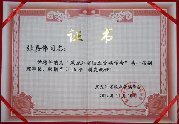 为进一步提高我省脑血管疾病诊疗水平,积极推动我省脑血管疾病规范化防治,11月30日,黑龙江省脑血管病学会成立大会在哈尔滨隆重召开,黑龙江省政府副秘书长王国才到会并讲话。会上,附属一院张嘉伟教授当选为黑龙江省脑血管病学会副理事长。
