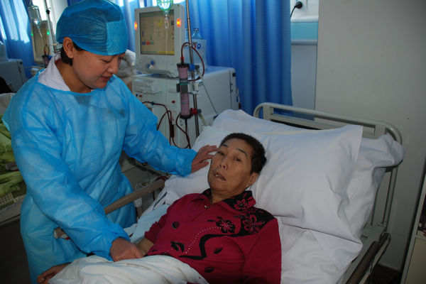 当天下班回家后,邵月春便与爱人说了马丽翠的事情,两人决定要帮助这位患者。从这天开始,每周一、三、五,邵月春和爱人都开车免费接送马丽翠,风雨无阻,却让她上小学六年级的女儿每天骑自行车。邵月春来到医院,开始了一天的忙碌,在间歇的时候也不忘去看看马丽翠,透析4个小时后,她和爱人还要送马丽翠回家。