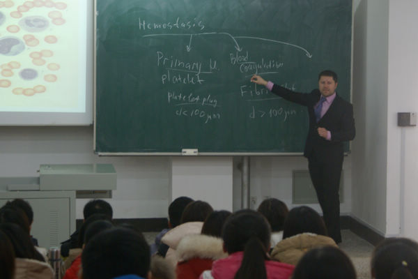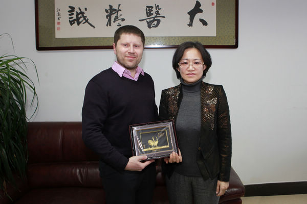 来院工作期间,尤里教授和阿里克谢副教授承担了部分生理学授课任务,并与学院医药科学研究院工作人员开展了科研工作交流与洽谈。学院副院长张晓杰同俄方教师进行了交流,并向外宾赠送了具有齐齐哈尔地方特色的礼物。尤里教授从事生理学教学和科研工作30余年,发表学术论文400余篇,专著8部,具有丰富的工作经验,在俄罗斯血栓研究领域具有较高的学术地位。阿里克谢副教授曾先后在法国和以色列进行血液免疫方面的科学研修,具有较好的教学和科研能力。