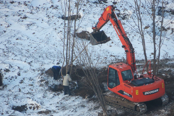 12月12日,学院图书馆北侧树木冬植全面启动。此次冬植计划栽植多年乔木118株,包括黄榆、山槐、水曲柳、红毛柳、核桃楸、蒙古栎、黑松等品种。为确保树木的成活率,后勤管理处员工将冒着零下二十多度的严寒,对树木进行疏植和防风树桩支撑,并浇灌一到二遍封冻水。冬植预计2015年1月中旬栽种完毕。