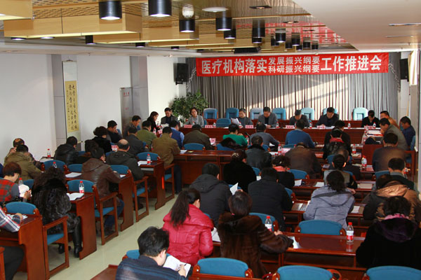为进一步贯彻落实《“2011-2015”附属医院发展振兴纲要及2020年远景目标》和《“2011-2015”科学研究发展振兴纲要及2020年远景目标》文件精神,积极推进“学术型”医院建设进程,12月19日下午,学院在图书行政楼1801会议室召开了医疗机构落实“两个纲要”工作推进会。学院领导刘吉成、谭忠汉、姜凤楼、张晓杰、毕红霞、何宪坤出席会议。附属医院领导班子全体成员、临床病理诊断中心负责人及相关科室人员,学院本部院办、党办、人事处、教务处、科研处、学生工作部(处)负责人等53人参加会议。会议由学院副院长丛明宇主持。